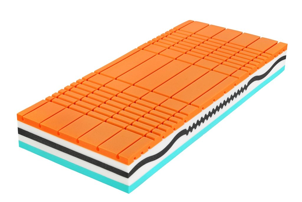 DOKONALO POHODLNÉ A VZDUŠNÉ JADRO: Ortopedická 7- zónová konštrukcia s pamäťovou penou bez lepenia a s priedušným, pohodlným latexom. Objemové hmotnosti vrstiev 35 – 65 kg/m3 s najdlhšou možnou mechanickou i hygienickou životnosťou.