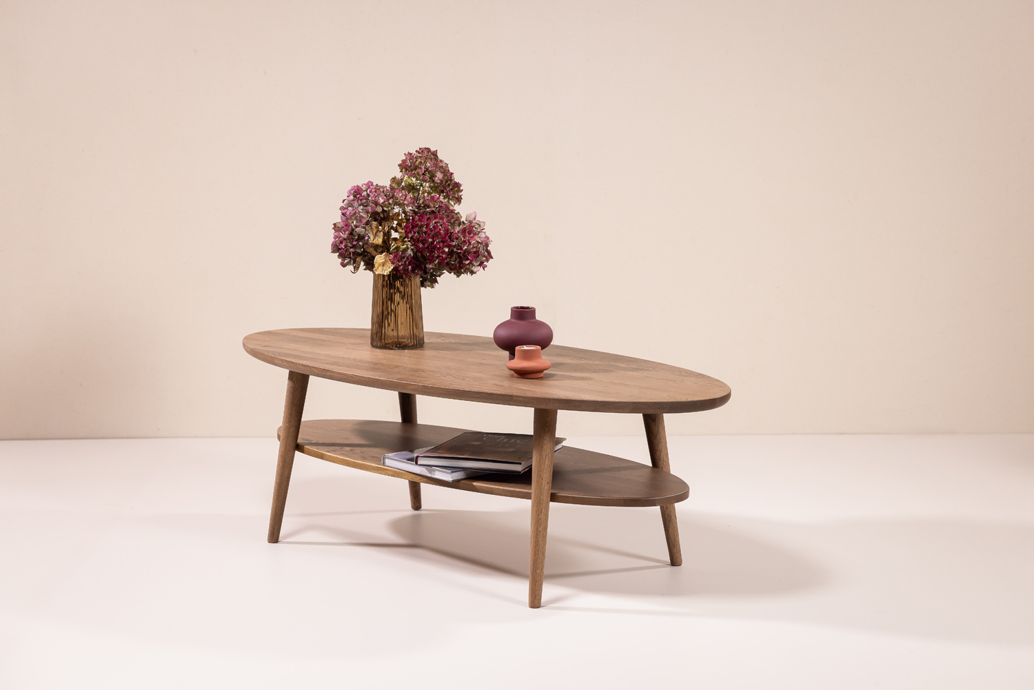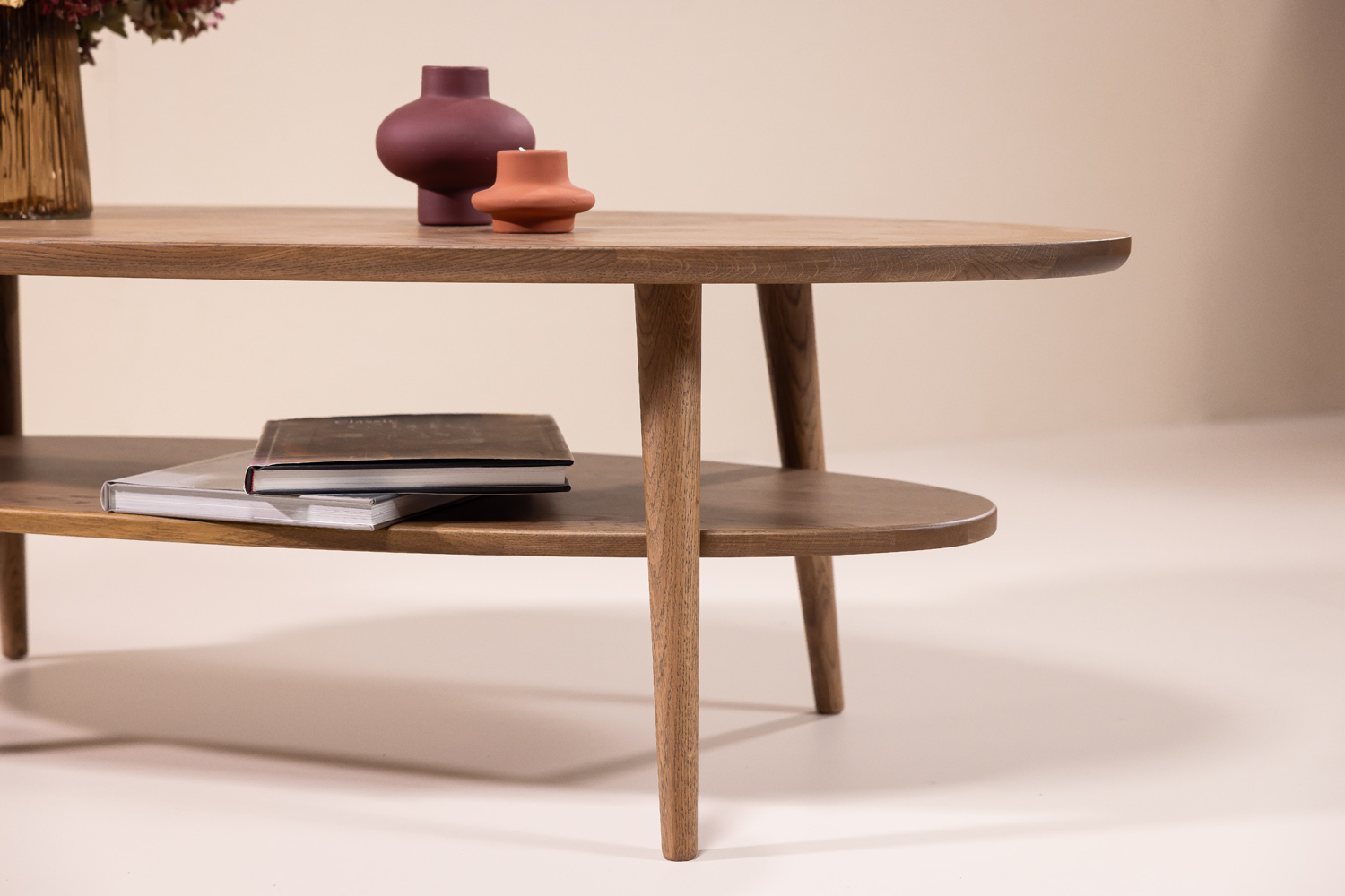 Ella je štýlový a vysoko praktický konferenčný stolík s integrovanou poličkou pre každodenné pohodlie.