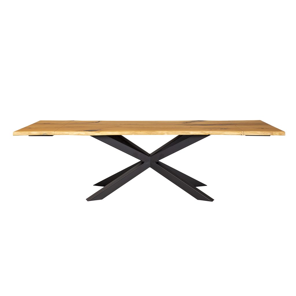 Rozťahovací stôl ST384 vyrobený z masívneho dubového dreva. Pevný, masívny a zároveň neskutočne funkčný. Stolová doska má obdlžníkový tvar a je vyrobená z pevných lamiel v hrúbke 2,5 cm, je v spodnej časti jemne zošikmený. Podopierajú ju rovné klasické, hranaté nohy. Špeciálny systém motýľových vložiek skrytých pod doskou stola ich robí neviditeľnými a zároveň dokonale chránenými pred mechanickým poškodením. Systém rozkladania stola je veľmi jednoduchý. Stôl môžeme rýchlo predĺžiť a zväčšiť ďalšími 2 nadstavcami o šírke 50 cm.