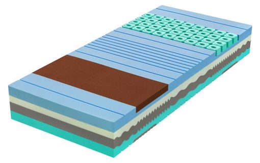 - HYBRID HY 8 cm 38 kg/m3 super-elastická hybridná pena strednej tuhosti – vyrovnáva tlak v ploche matraca.