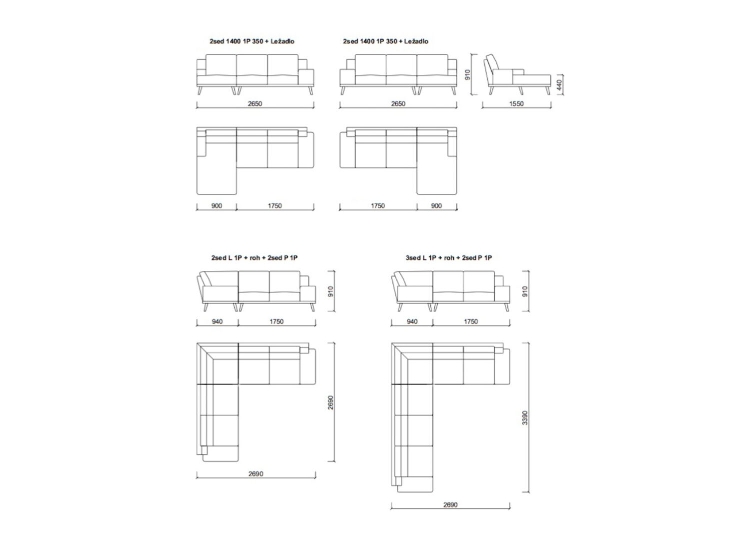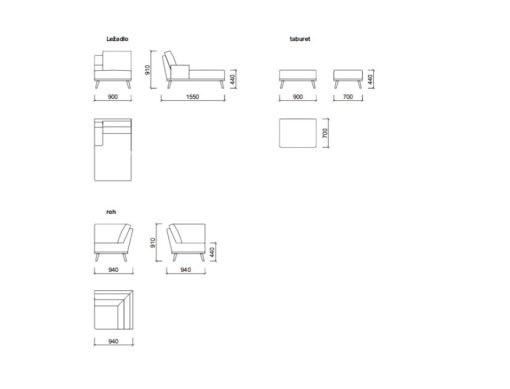 Základné parametre: celková výška je 91 cm, sedák je vo výške 44 cm, hĺbka sedačky je 94 cm, nožičky sú cca 15 cm vysoké (máte možnosť si vybrať nožičky). Šírku sedákov vieme prispôsobiť požiadavkám klientov, štandardná šírka sedákov je 70 cm.